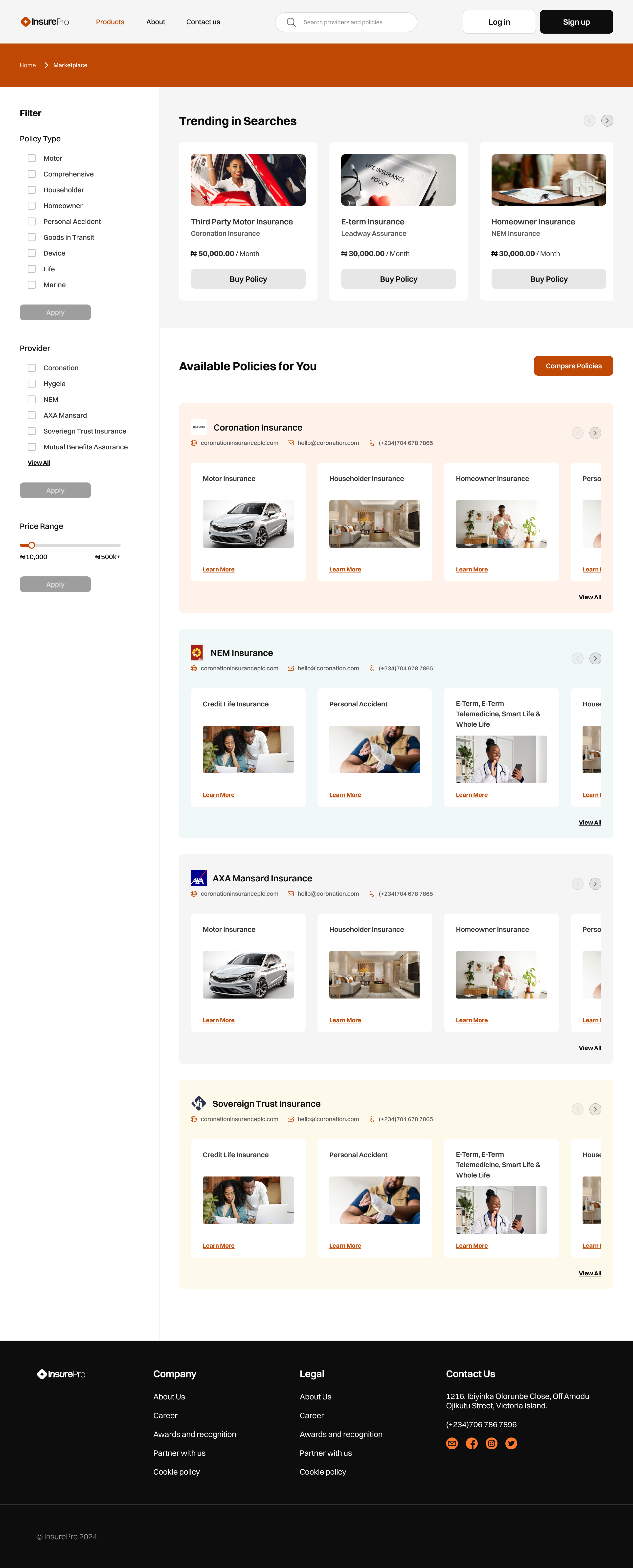 A comprehensive web application for purchasing and monitoring insurance policies from multiple providers, serving both individual customers and brokers.